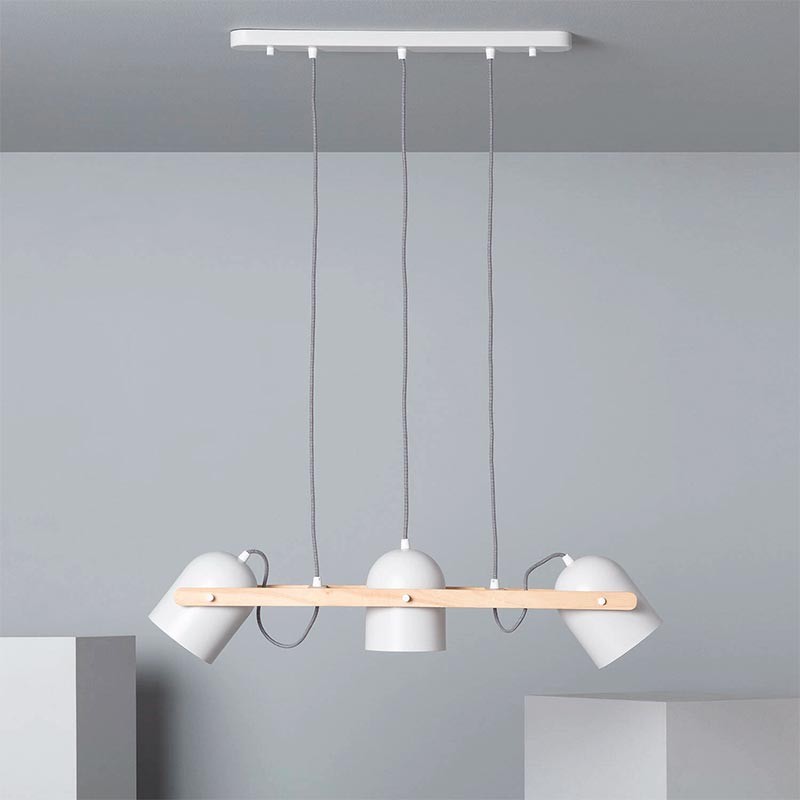 Cette suspension combine des matériaux de la plus haute qualité tels que le métal et le bois, caractéristiques du style nordique et méditerranéen, pour apporter de la chaleur à l'environnement. Avec ses 3 écrans rotatifs, il est possible de diriger la lumière en fonction de besoins d'éclairage spécifiques. De plus, la hauteur de la lampe peut être ajustée pour s'adapter parfaitement à l'espace.