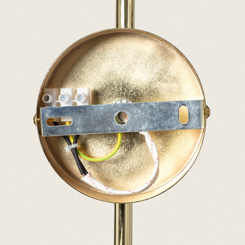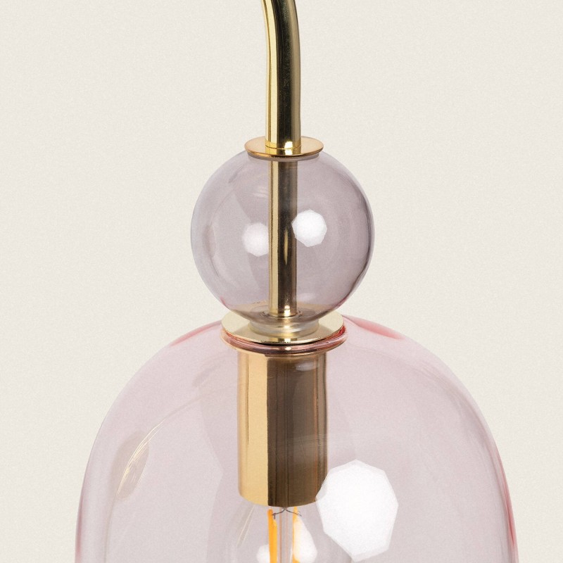 Cette applique est idéale pour les espaces de style vintage, se distinguant par sa fabrication principale en verre coloré et métal doré.
