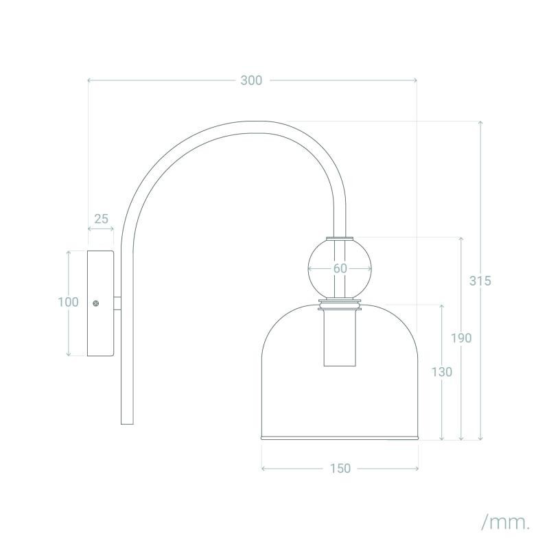 Caractéristiques de l'applique murale en métal et verre Baudelaire