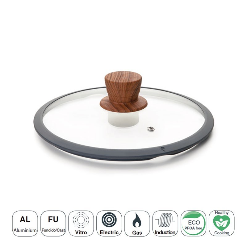 Couvercle pour casseroles ou des pots de la gamme Stilo dans la cuisine, et fait de verre avec son bouchon en silicone conçue pour une plus grande économie d'énergie.