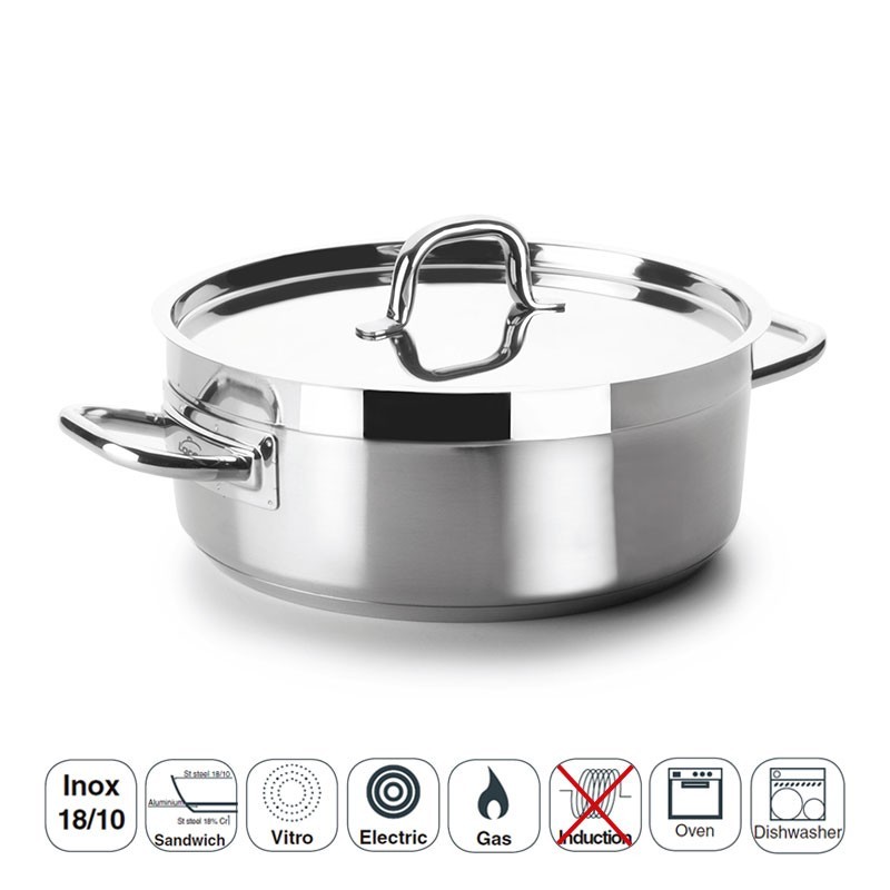 Pan professionnel de la non-bouchon modèle de Chef Luxe fabriqués en acier inoxydable 18/10 avec fond termodifusor sandwich convient pour les plaques à induction, plaques de cuisson électriques et des cuisinières à gaz.