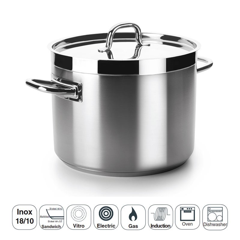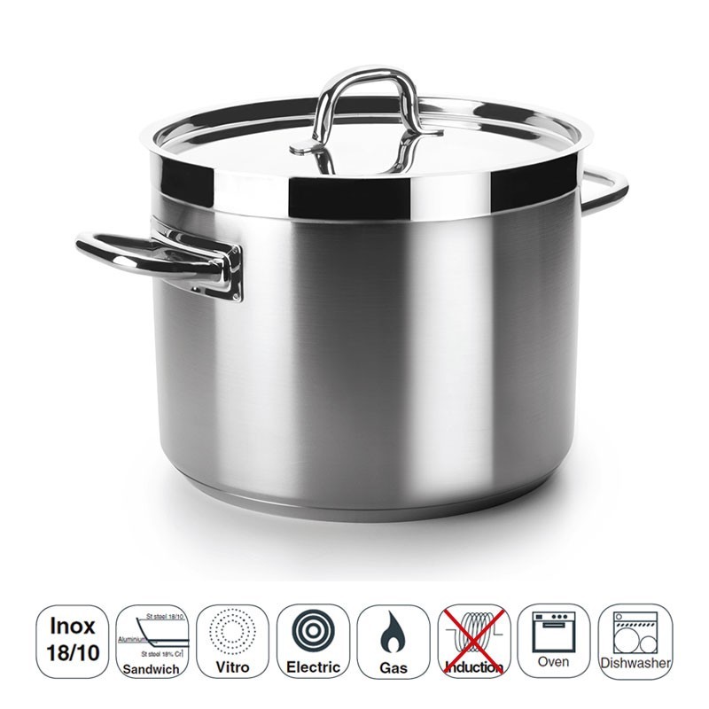 Pot à faible professionnelle sans le couvercle modèle de Chef Luxe fabriqués en acier inoxydable 18/10 avec fond termodifusor sandwich convient pour les plaques à induction, plaques de cuisson électriques et des cuisinières à gaz.