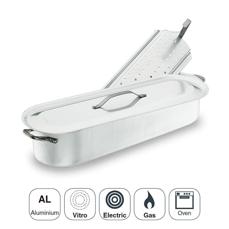 Marmite de poisson modèle professionnel, le Chef de l'Aluminium pur en aluminium de haute qualité compatible avec les cuisinières à gaz, plaques de cuisson en vitrocéramique et électrique.
