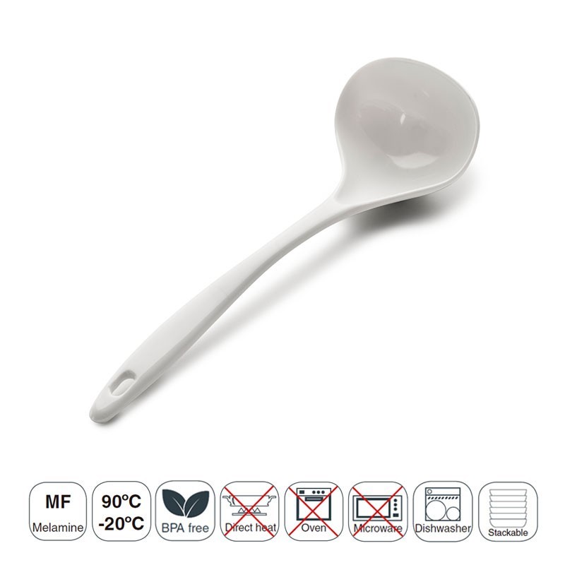 Louche à droite 27 cm longueur de la gamme Classic Blanc en résine de synthèse de haute résistance et au lave-vaisselle.