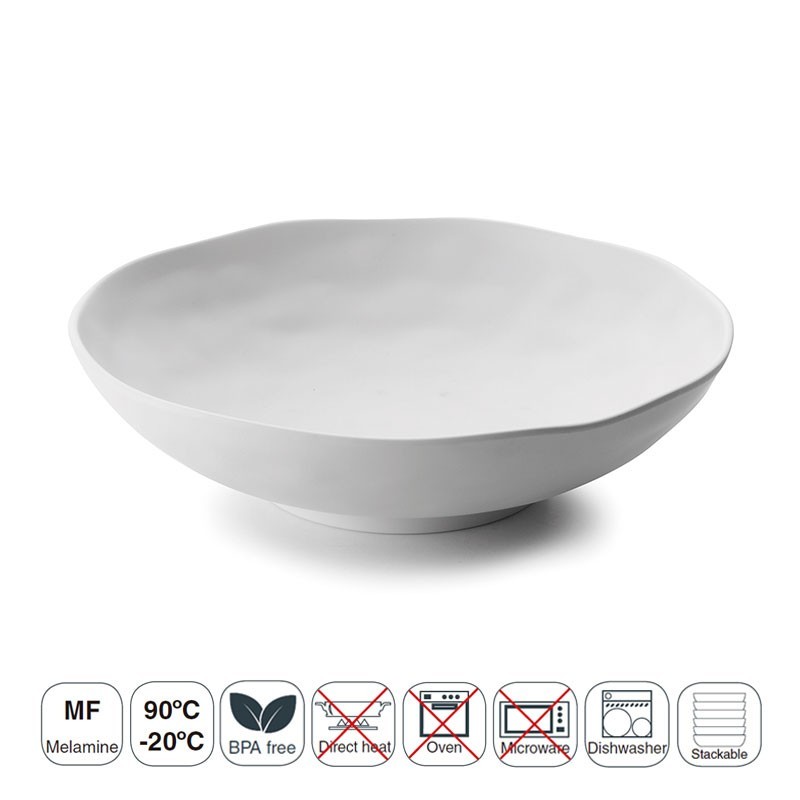 Plat rond de couleur blanc de la série en Noir Et Blanc en résine de synthèse de haute résistance et au lave-vaisselle. Dimensions: 31 x 8 cm Capacité: 3 l