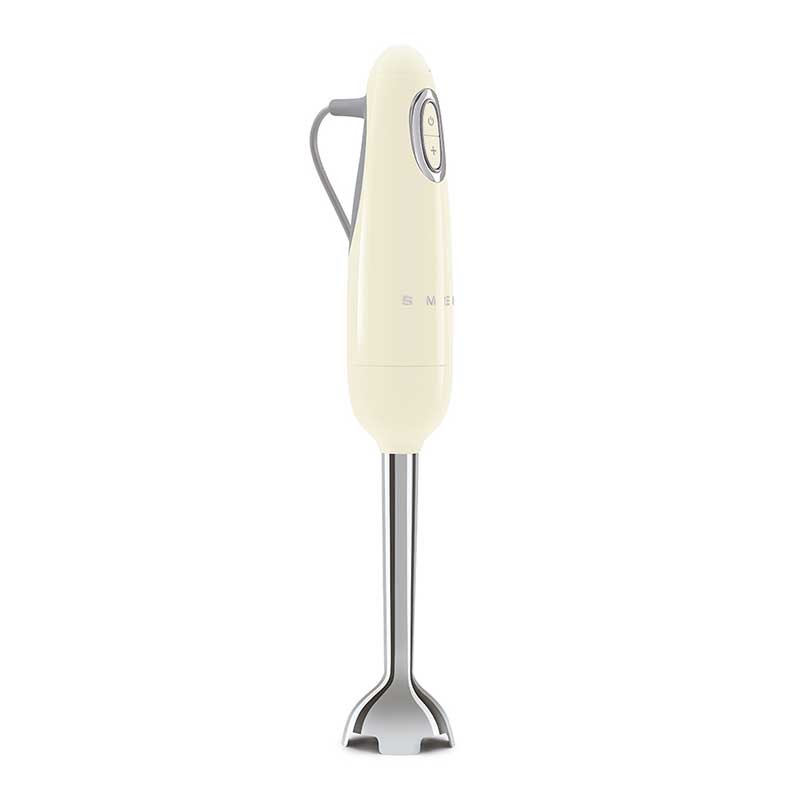 Mixeur à main Smeg 50's style gloss cream finish avec 700 W de puissance, vitesse variable et fonction turbo.