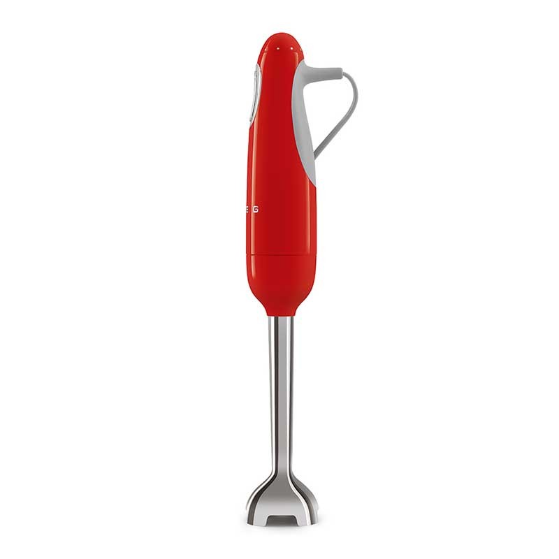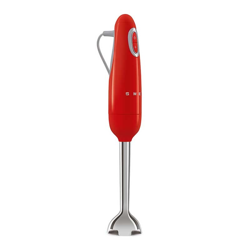 Mélangeur à main Smeg 50's style finition rouge brillant avec 700 W de puissance, vitesse variable et fonction turbo.