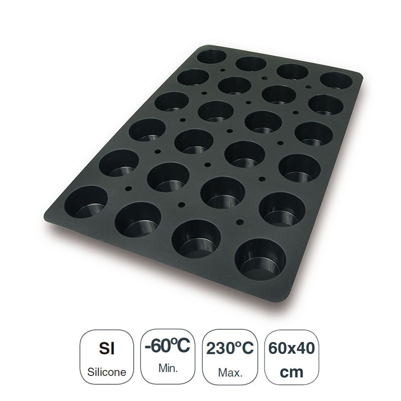 Moule à muffins pour les pâtisseries avec 24 cavités de Ø69x39 mm et 122 ml en silicone Noir.
