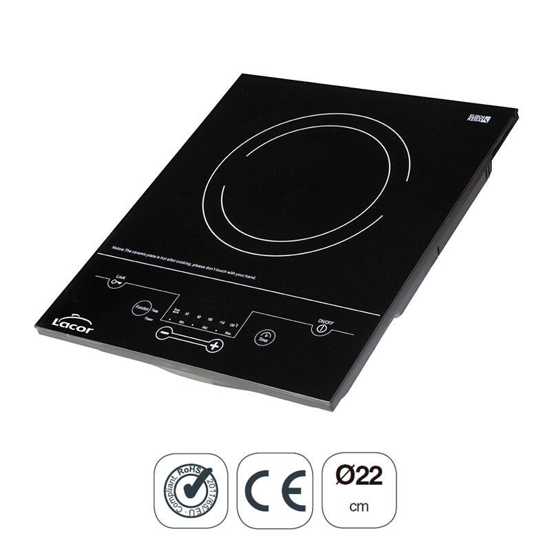 Table de cuisine à induktion portable de 2000 W avec 1 zone de cuisson d'un diamètre de 22 cm, 6 niveaux de puissance et de la minuterie.