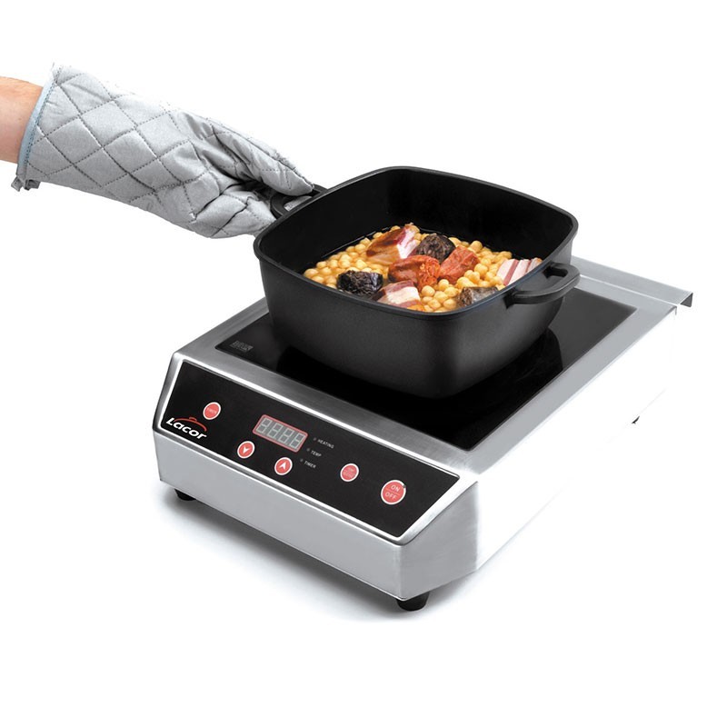 Plaque de cuisson à Induction portable gamme Professionnelle de 3500 W avec 1 zone de cuisson de 12 à 28 cm de diamètre et 13 niveaux de puissance avec une minuterie.