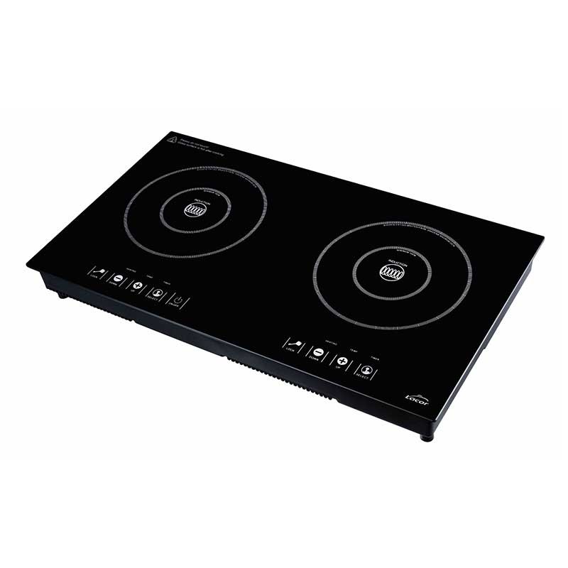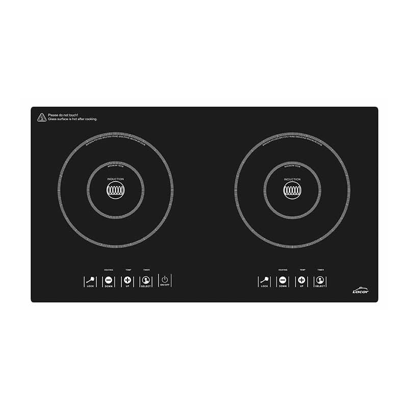 Plaque de cuisson à Induction portable avec 2 zones de cuisson de 10 à 20 cm de diamètre respectivement, et 7 niveaux de puissance avec une minuterie.