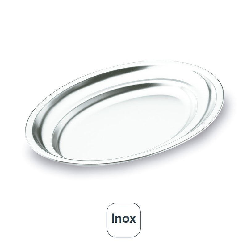 Plat ovale, en acier inoxydable, matériau lisse, non poreux et très hygiénique qui offre une excellente résistance à la corrosion.