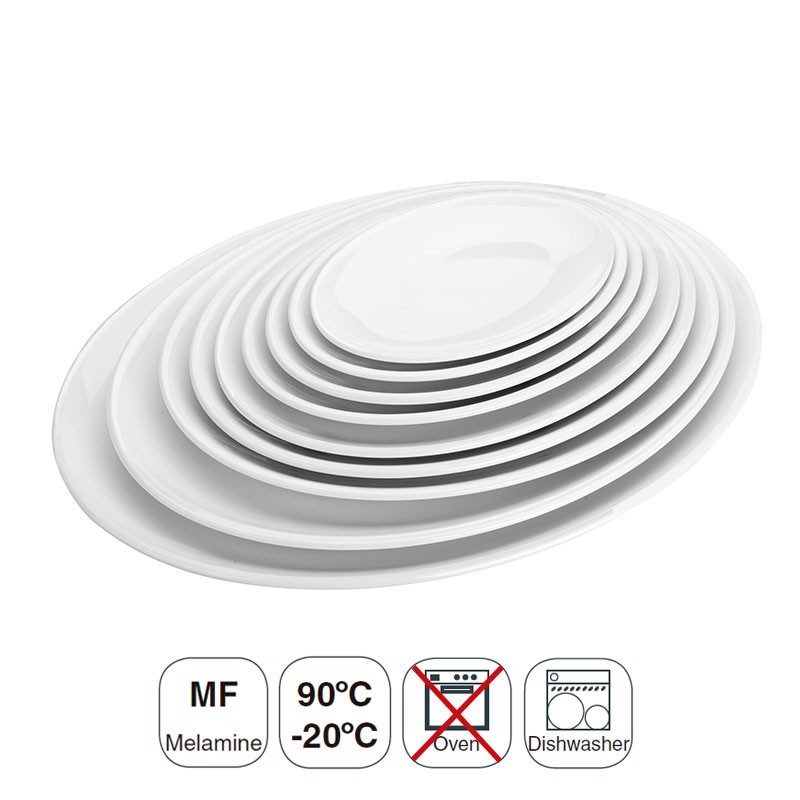 Plateau ovale série Mélamine composé de résines synthétiques de haute résistance et au lave-vaisselle. Disponible en différentes tailles.