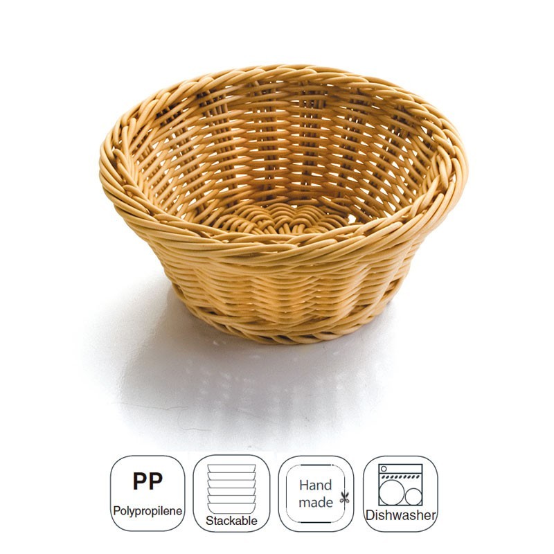 Corbeille à pain ronde et empilable fabriqué à la main en polypropylène de haute résistance adapté pour le lave-vaisselle. Idéal pour l'hôtellerie et la restauration. Disponible en différentes tailles.