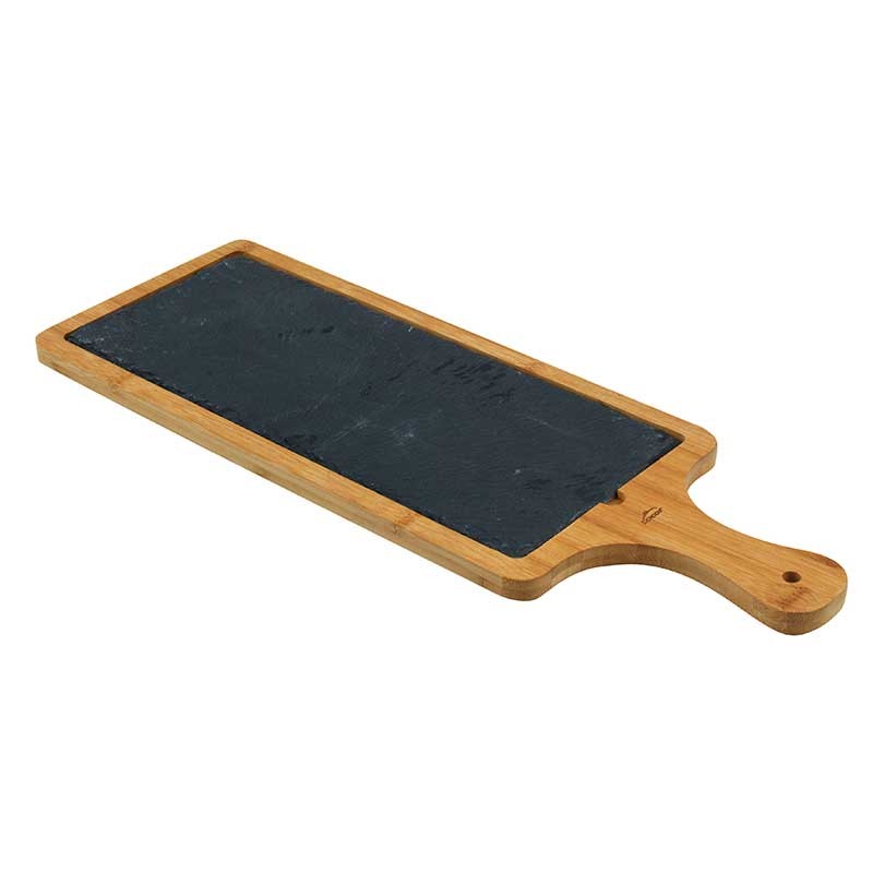 Table rectangulaire fabriquée en bambou naturel avec une base en ardoise naturelle avec amovible idéal pour présenter et servir de la nourriture à la table.