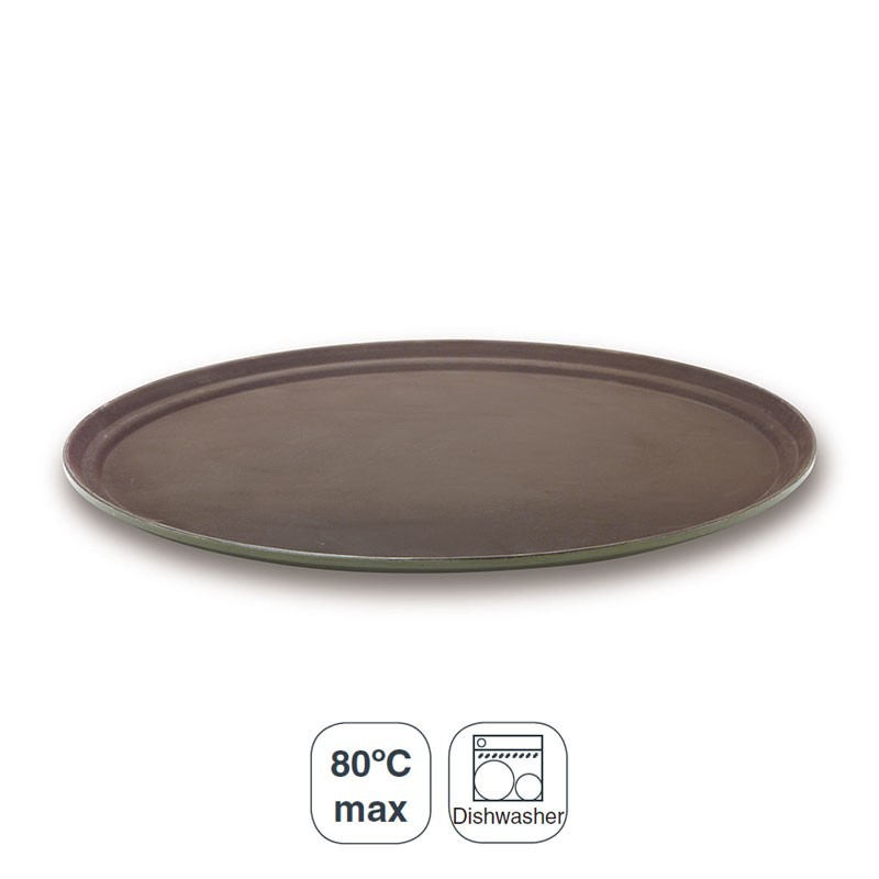 Plateau ovale en fibre de verre, matériau indéformable, anti-adhérent et anti-dérapant et très léger. Mesures: 56 x 68 cm