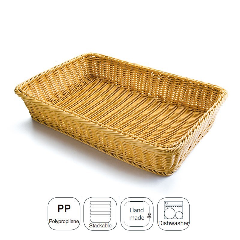 Panier à pain carré et empilable fabriqué à la main en polypropylène de haute résistance adapté pour le lave-vaisselle. Idéal pour l'hôtellerie et la restauration. Mesures: 53X33,5X9 cm