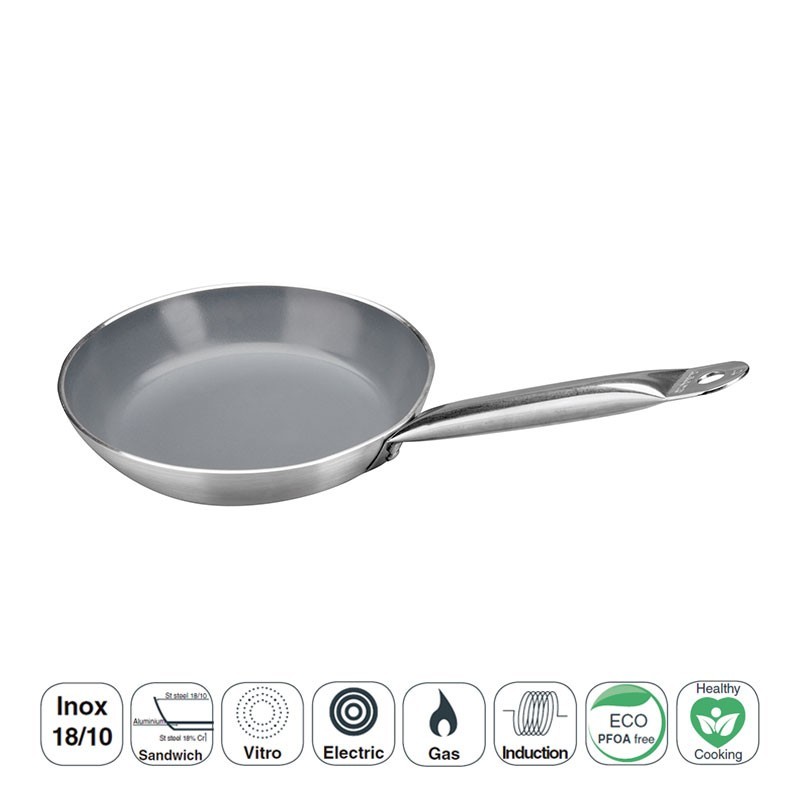 Poêle modèle d'Éco-Chef en Céramique, en acier inoxydable de haute qualité qui offre une excellente résistance à la corrosion et aux acides, de l'alimentation et de la vente. Son intérieur comporte un revêtement en céramique.