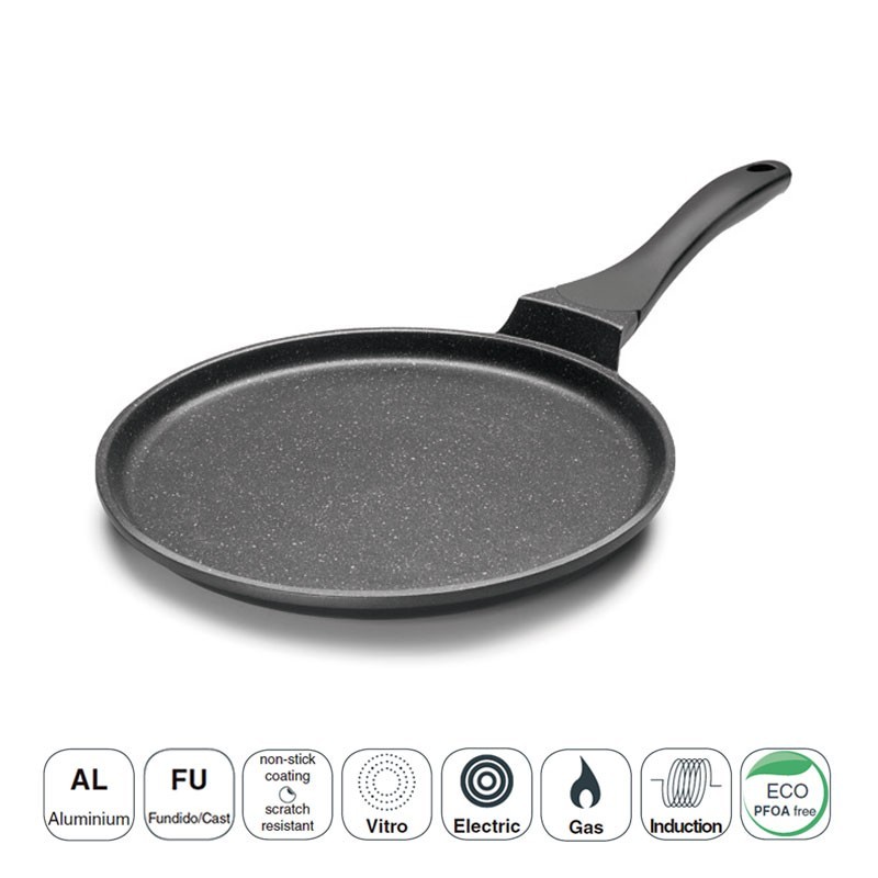 Crepera Noir Eco-Pierre est faite de fonte d'aluminium de forte épaisseur avec revêtement en pierre-hyper-résistant aux éraflures.