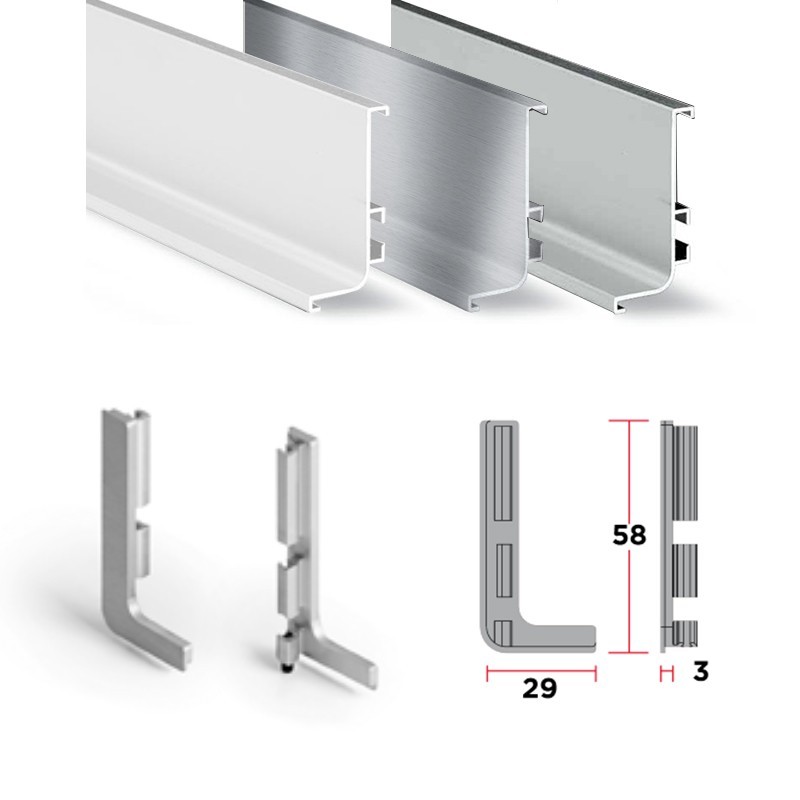 Set de couvercles pour l'achèvement final des profils gola horizontale supérieure de meubles de cuisine.