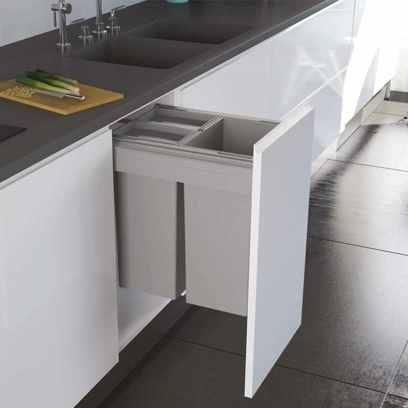 Les bacs à déchets amovible de grande capacité et de la hauteur de 463 mm pour l'installation des meubles de cuisine. Disponibles dans différentes tailles en fonction de la mesure de meuble.