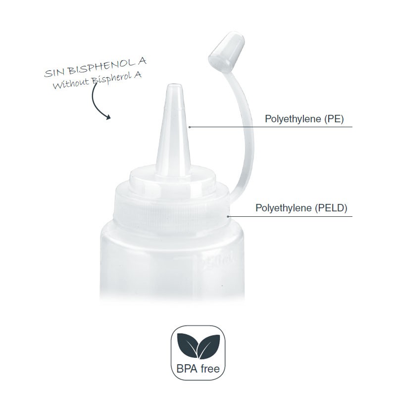Ses plug-fil facilite le remplissage de la bouteille et sa pointe fine permet la dosés doit être propre et sans couler. En outre, chaque bouteille porte une échelle de mesure de contrôler la quantité que nous avons à l'intérieur.