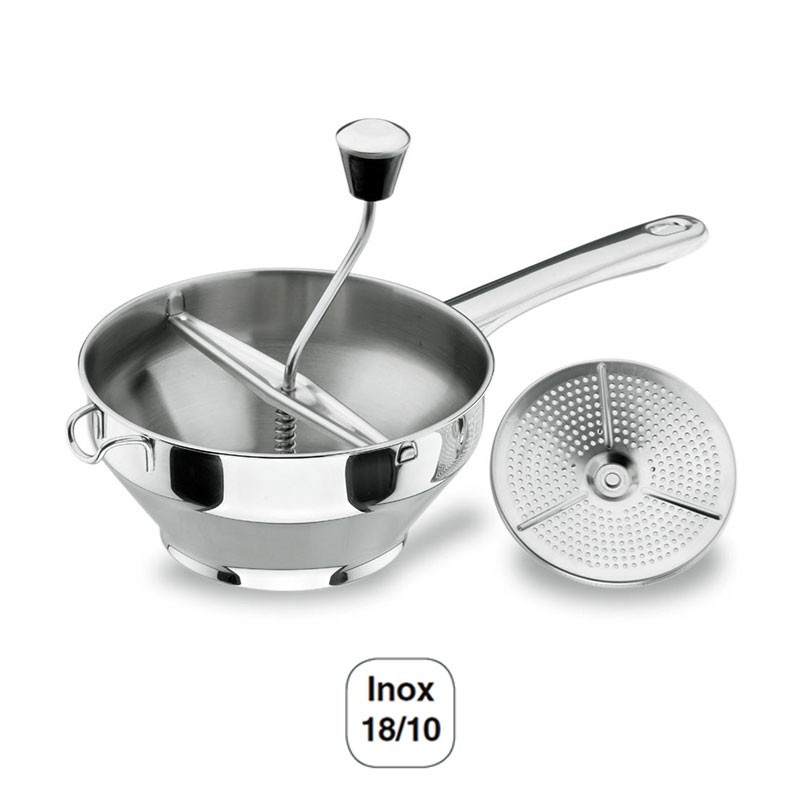 Moulin à légumes en acier inoxydable 18/10 de haute qualité et résistance à la corrosion. Obtenez fine et crémeuse, purées de légumes, de fruits ou de légumes.