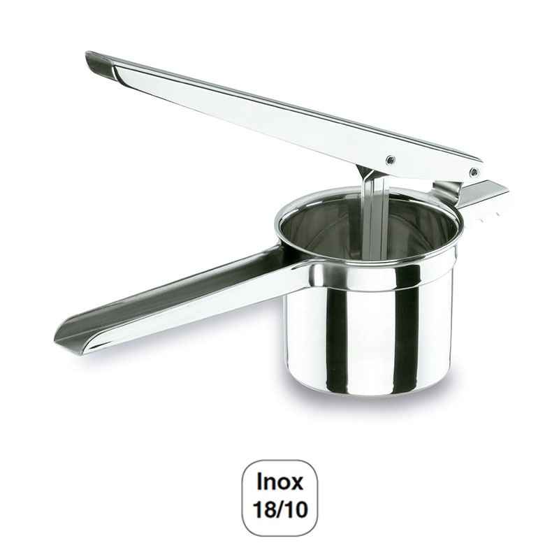 Appuyez sur pour les pommes de terre faite de haute qualité en acier inoxydable et la résistance à la corrosion. Mesures: 9 x 28 x 11 cm
