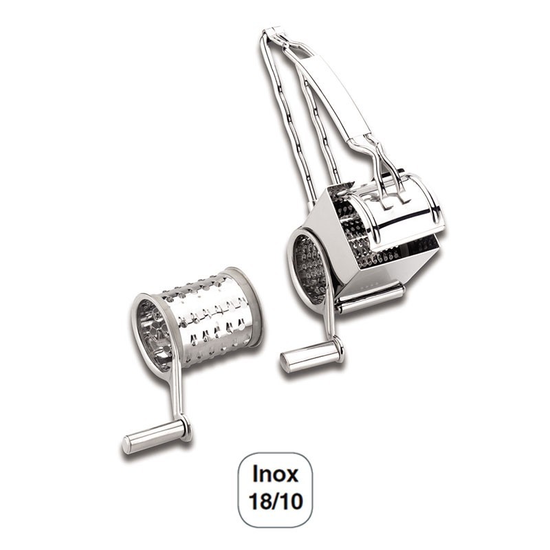 Râpe avec 2 lames en acier inoxydable 18/10 de haute qualité et résistant à la corrosion. Mesures: 13,5 x 20 x 10 cm