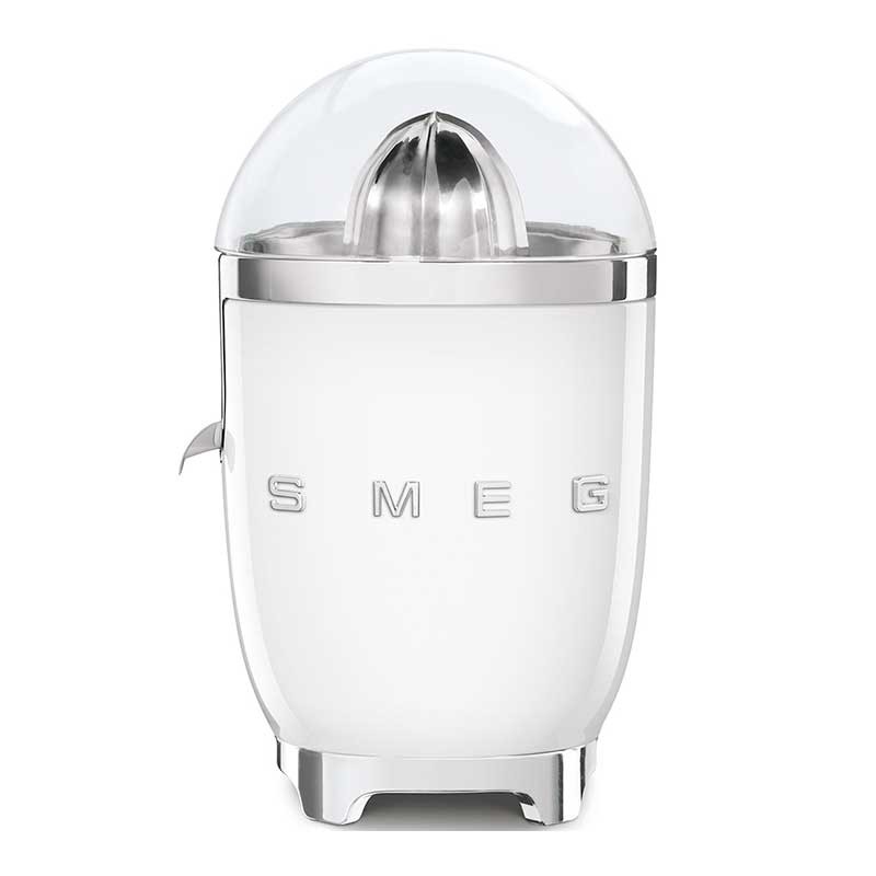 Le presse-agrumes Smeg possède les lignes courbes spéciales de la gamme de style des années 50 et est disponible dans une large gamme de couleurs.