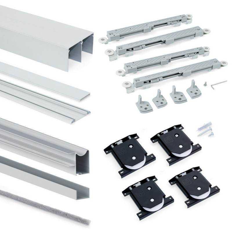 Kit pour armoire Penderie avec deux portes coulissantes comprend tout le matériel et les profils nécessaires pour l'assemblage et l'installation.