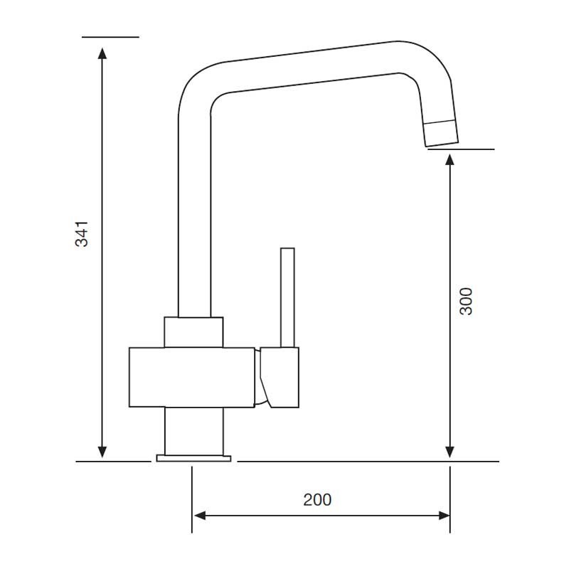 Poignée simple robinet modèle Air de 34,1 cm de haut et fini en chrome pour évier de cuisine. Cartouche en céramique 35 mm montage vertical sur le plateau.