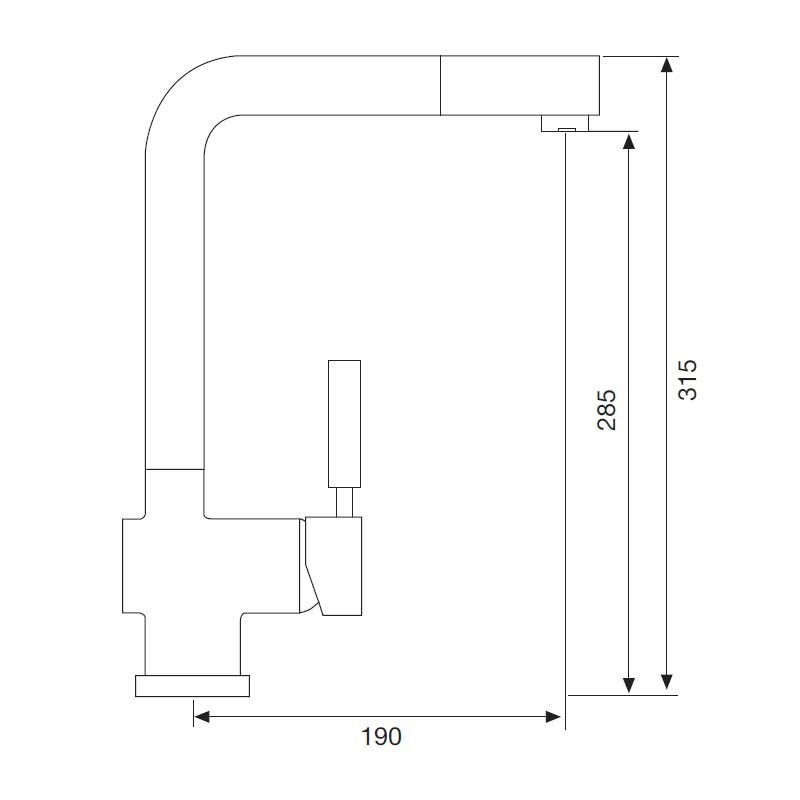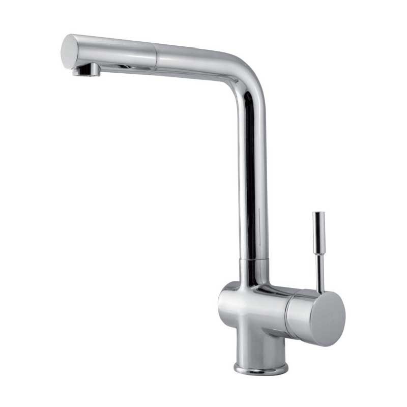 Poignée simple robinet de modèle Iris 31,5 cm de hauteur et fini en chrome pour évier de cuisine. Cartouche céramique de 40 mm montage vertical sur le plateau.