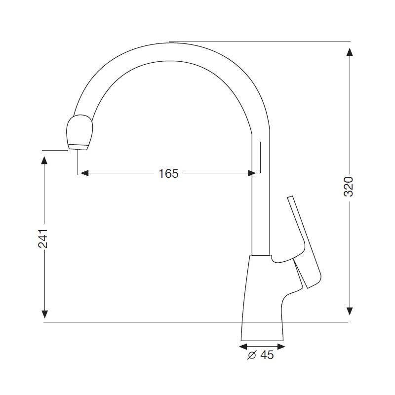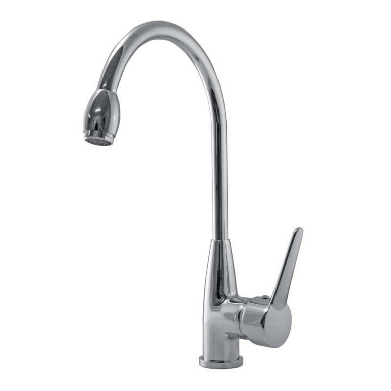 Poignée simple robinet de modèle Fedora 32 cm de hauteur et fini en chrome pour évier de cuisine. Cartouche en céramique 35 mm montage vertical sur le plateau.