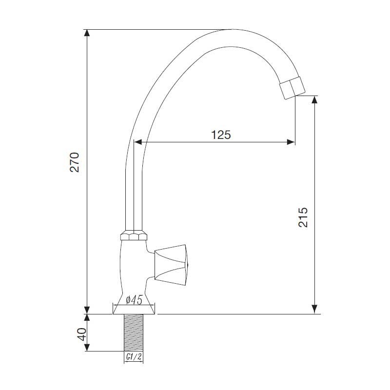 Robinet 1 sortie pour l'eau froide modèle Aida de 27 cm de hauteur et un fini chromé pour lavabo ou une pile de linge. Installation verticale sur le plateau.