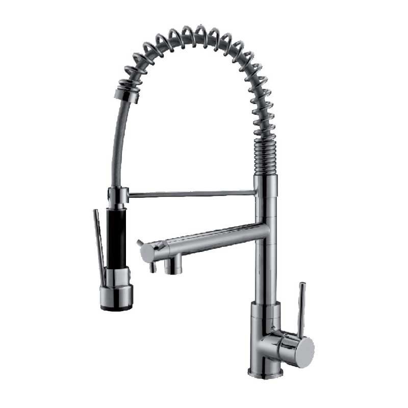 Poignée unique robinet avec douche, bec verseur avec le printemps et le robinet accessoire rotatif modèle Industriel 49,5 cm de hauteur et fini en chrome pour évier de cuisine. Cartouche en céramique 35 mm montage vertical sur le plateau.