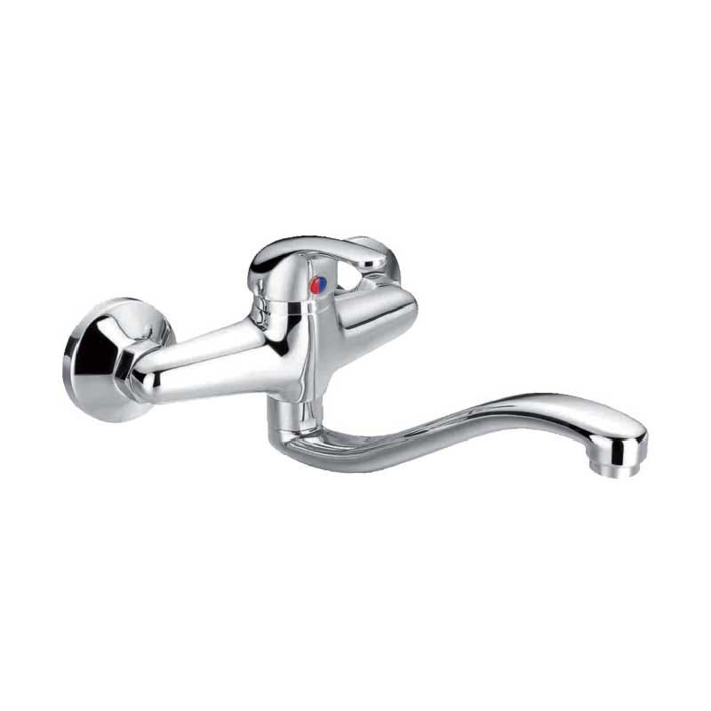 Poignée unique robinet avec bec bas du modèle Standard de la finition de chrome pour évier de cuisine. Cartouche céramique de 40 mm type de Conception murale pour une installation dans le mur. La Distance entre les plans: 15 cm