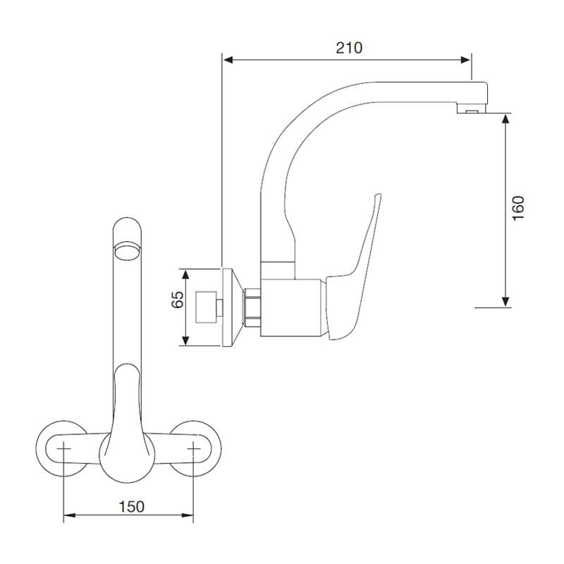Poignée simple robinet modèle Standard finition chromée pour évier de cuisine. Cartouche céramique de 40 mm type de Conception murale pour une installation dans le mur. La Distance entre les plans: 15 cm
