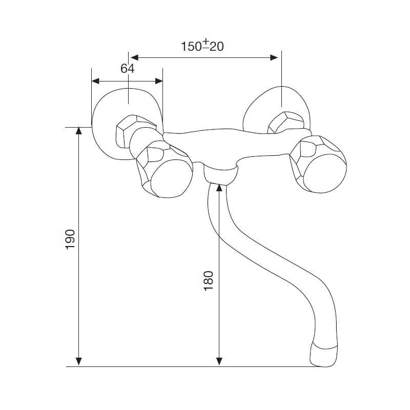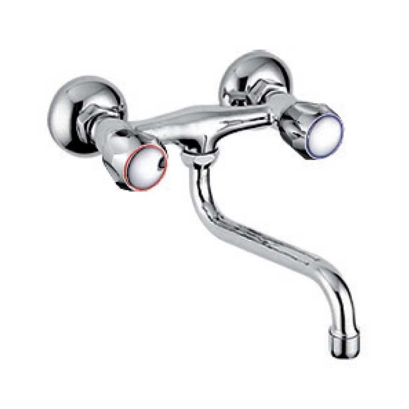 Robinet bimando de montage de la céramique et du bec bas modèle Aida fini en chrome pour évier de cuisine. La conception de type murale pour une installation dans le mur. La Distance entre les plans: 15 cm