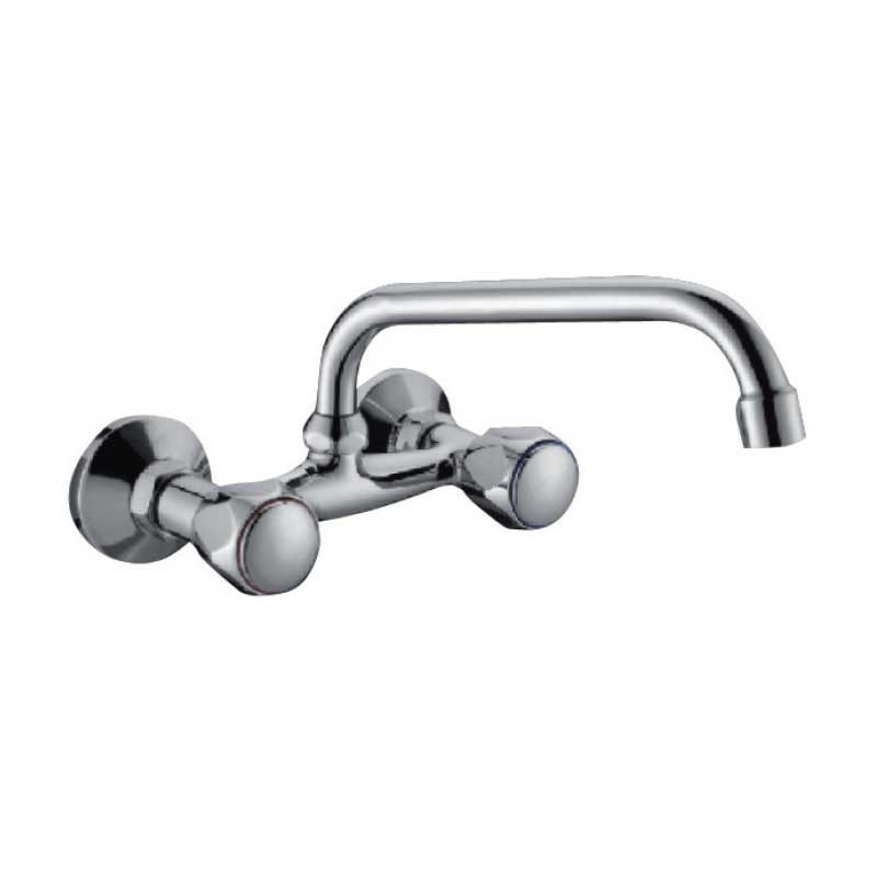 Robinet bimando de montage de la céramique modèle Aida fini en chrome pour évier de cuisine. La conception de type murale pour une installation dans le mur. La Distance entre les plans: 11 cm