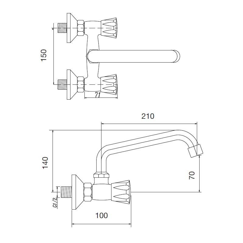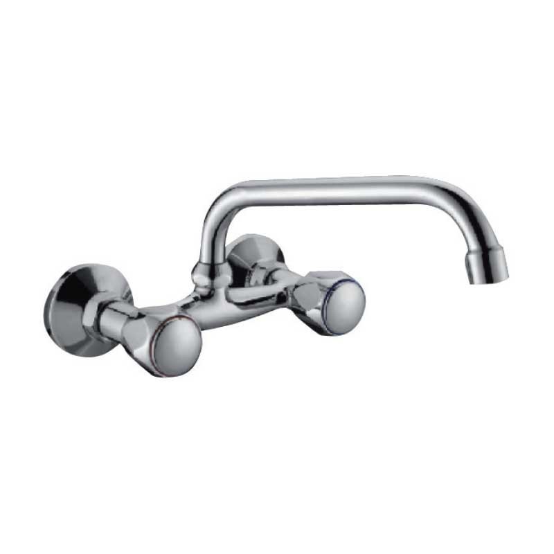 Robinet bimando de montage de la céramique modèle Aida fini en chrome pour évier de cuisine. La conception de type murale pour une installation dans le mur. La Distance entre les plans: 15 cm
