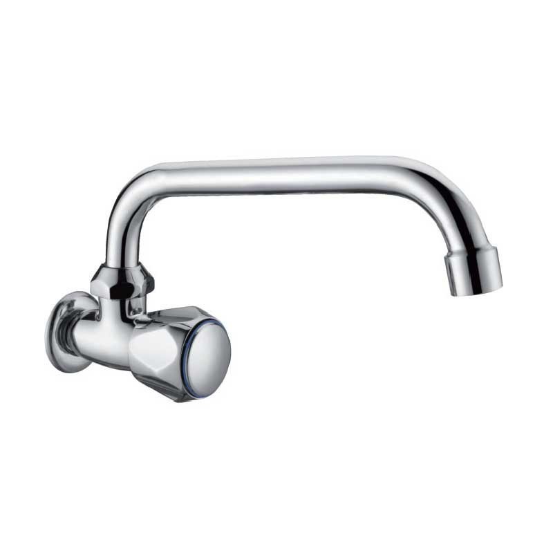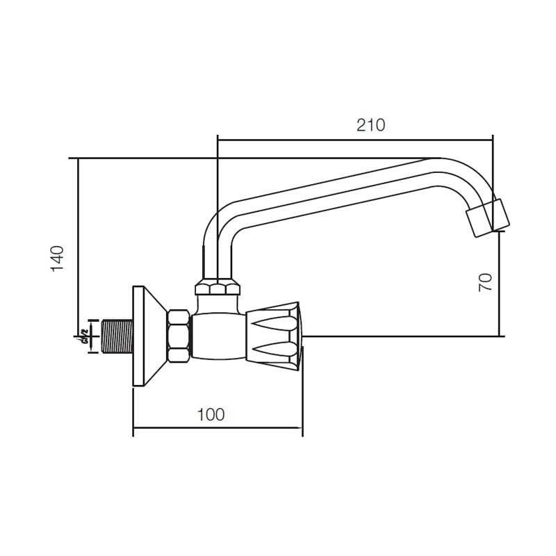 Appuyez sur 1, de production et de conduite d'eau froide dans le modèle Aida 14 cm de hauteur et un fini chromé pour lavabo ou une pile de linge. La conception de type murale pour une installation dans le mur.
