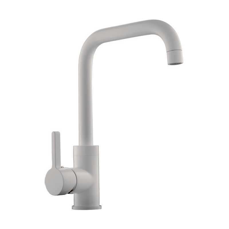 Poignée simple robinet de couleur blanche modèle Salomé 35,5 cm de hauteur pour évier de cuisine. Cartouche en céramique 35 mm montage vertical sur le plateau.