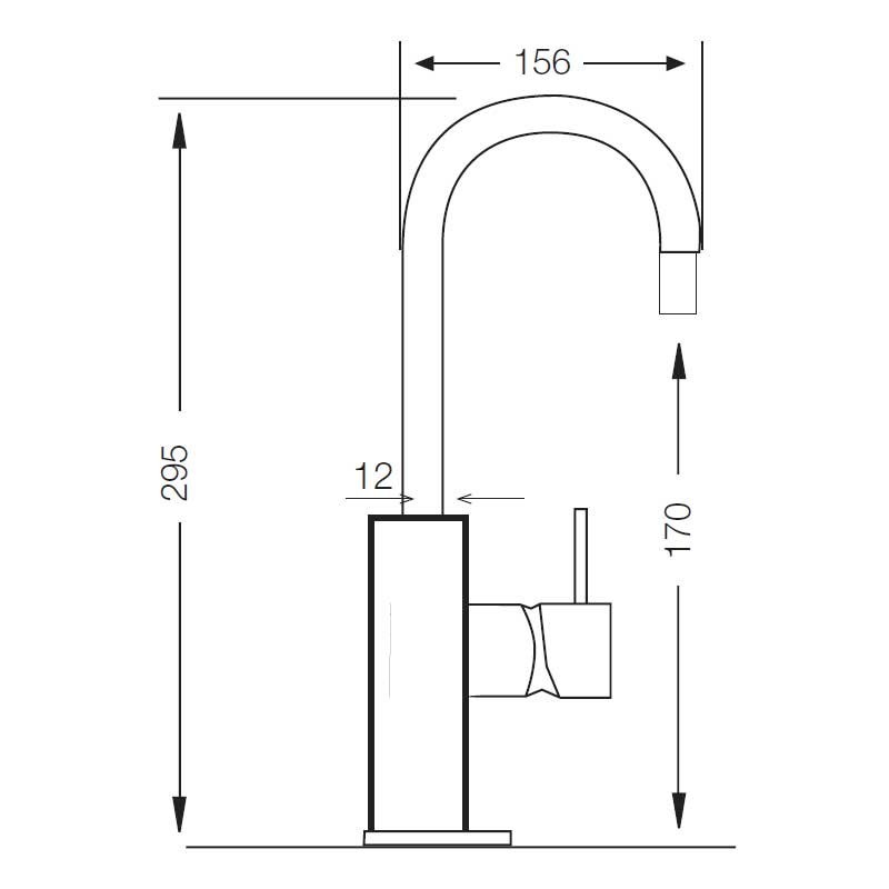 Poignée simple robinet pour l'eau d'osmose avec 1 sortie de montage en céramique de 5 mm de diamètre et le tuyau de 29,5 cm de hauteur et de chrome. Installation verticale sur le plateau.