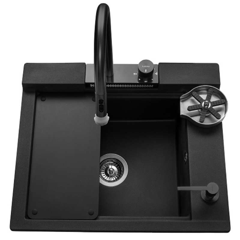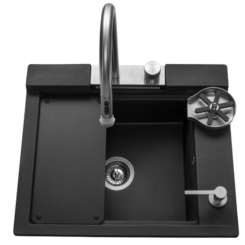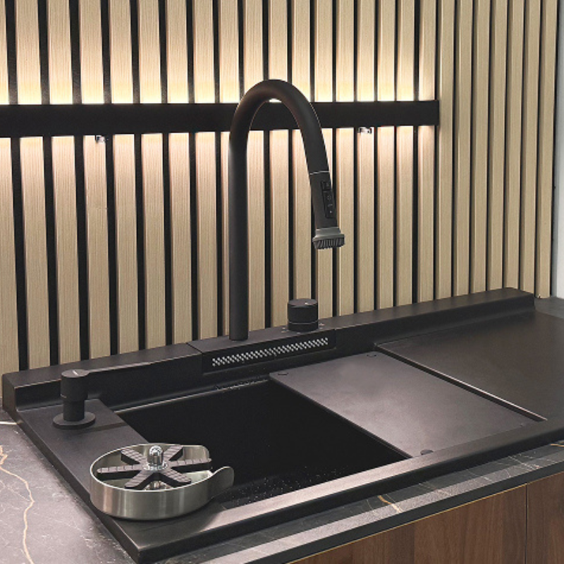 L'évier multifonctionnel sur comptoir Shiva inclut un robinet extractible et intègre des fonctions innovantes pour un usage optimal au quotidien avec tout ce dont vous avez besoin dans la cuisine.