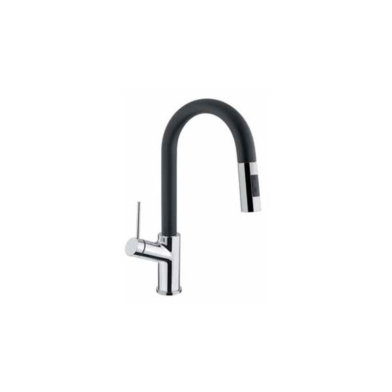 Robinet de cuisine Viva modèle D30-type de mélangeur de douche amovible et design à l'italienne en inox finition chrome et noir brillant.