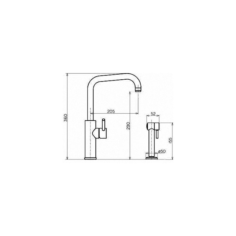 Robinet de cuisine de modèle Mitu Télé-Douche de type mixage et design italien en acier inoxydable, finition chrome ou nickel à choisir.