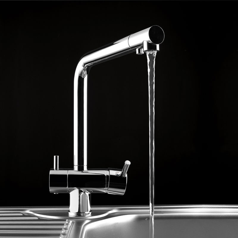 Robinet de cuisine modèle Pure Water de type table de mixage, d'osmose et de design à l'italienne en acier inoxydable finition chrome ou inox à choisir.