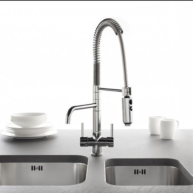 Robinet de cuisine de modèle Pur de type D de douche, d'osmose et de design à l'italienne en inox finition chrome brillant.