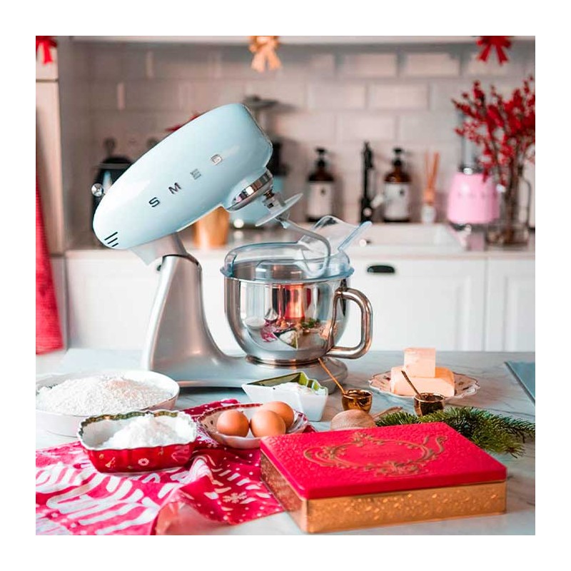 Anneau anti-éclaboussures compatible avec le bol en acier inoxydable des robots de cuisine Smeg 50's modèle SMF02 et SMF03. Dimensions: 359x174x224 mm.